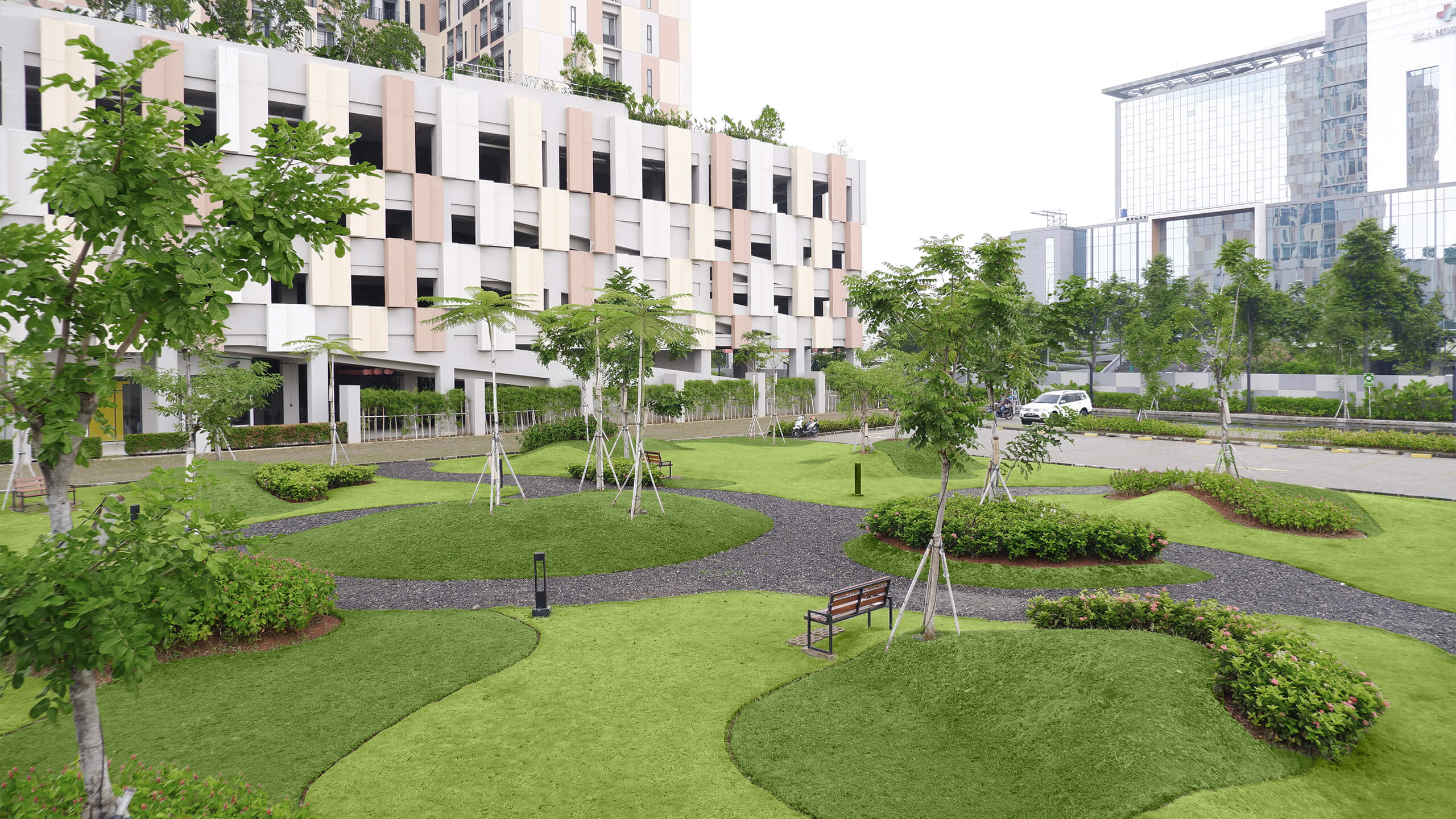 A Landscape Feature is a distinctive element in a garden or park designed to enhance its aesthetic appeal and functionality. This can include water features like ponds, fountains, or waterfalls; structural elements such as pergolas, gazebos, or bridges; and artistic installations like sculptures or mosaics. Each feature is thoughtfully integrated into the landscape to create focal points, improve usability, and enrich the overall experience for visitors.